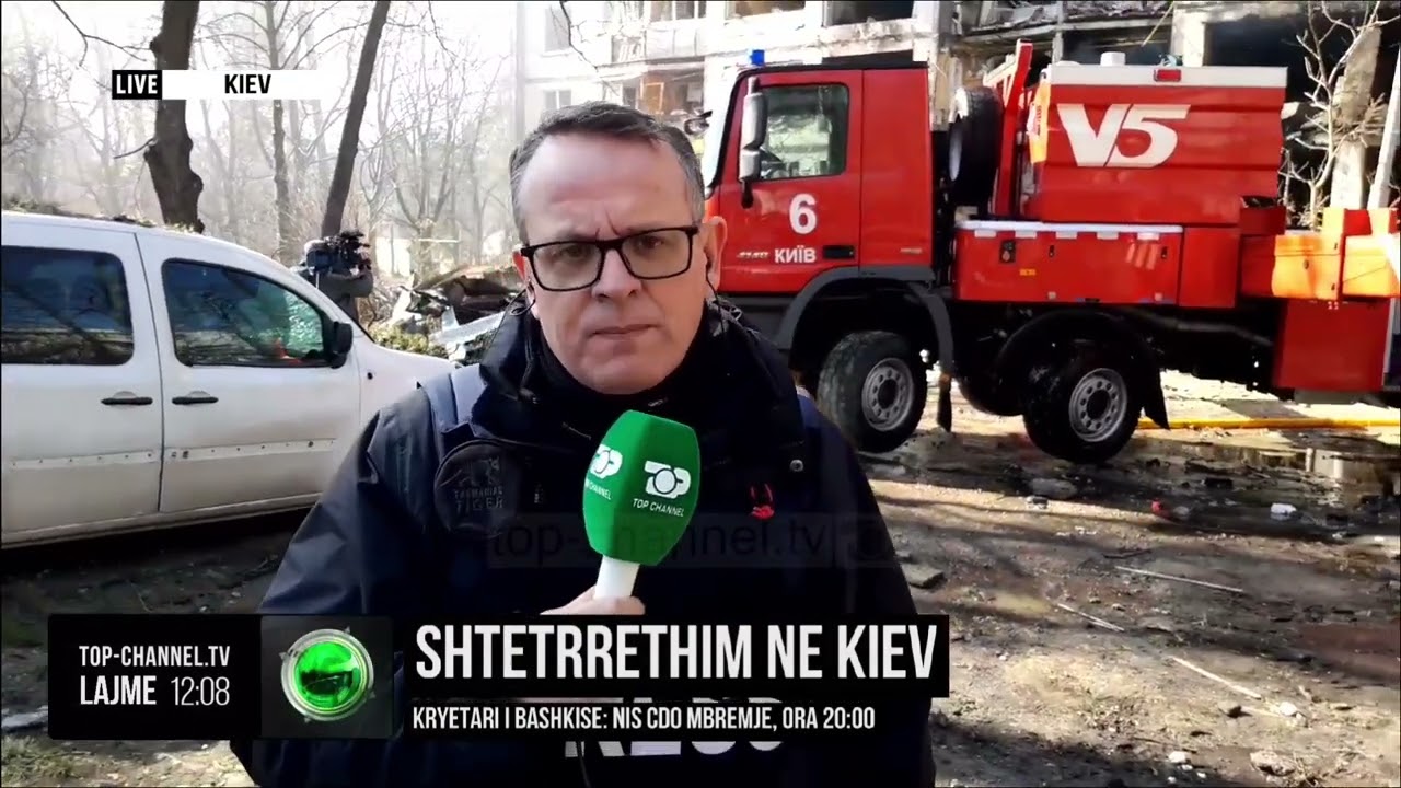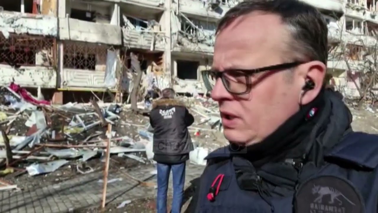 Top Channel/ ‘Shi’ bombash në Kiev, gazetari Artur Bibe mes objekteve të bombarduara