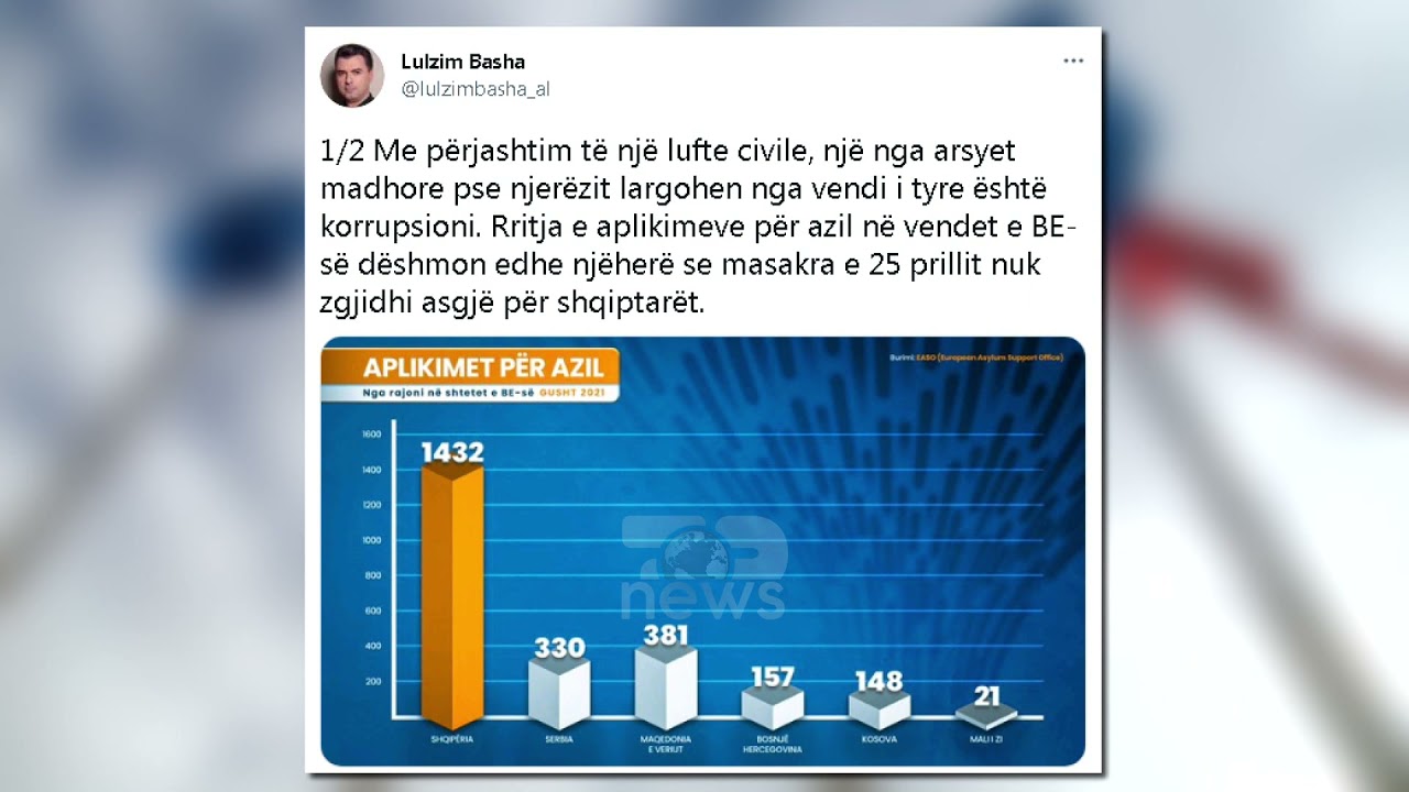 Top News- Lulzim Basha ‘zbulon’ arsyen e rritjes së azilkërkuesve shqiptarë