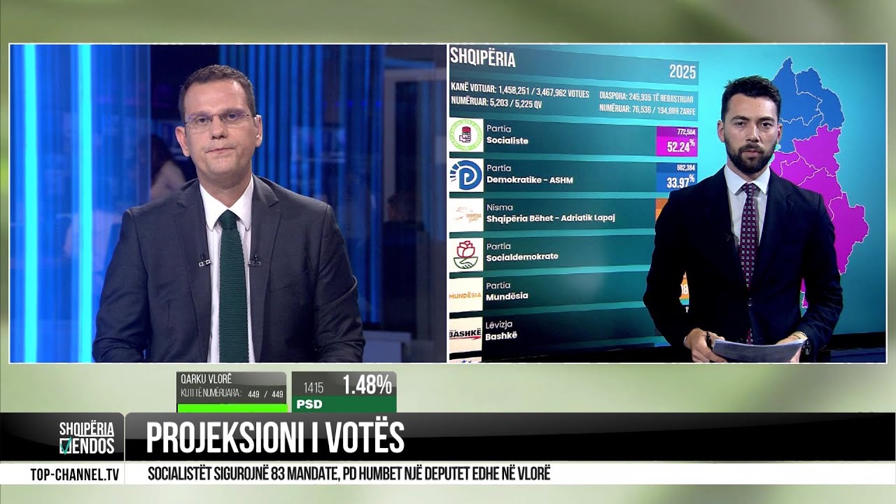 Top Channel/ Projeksioni i votës! Socialistët sigurojnë 83 mandate, PD humbet një deputet në Vlorë