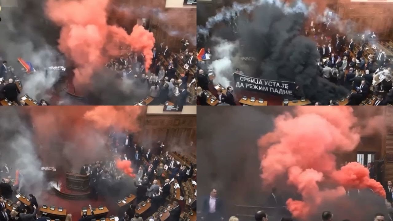 KAOS/ DIGJET parlamenti SERB, plas GRUSHTI mes deputetëve, tymuese dhe ULËRIMA | Breaking