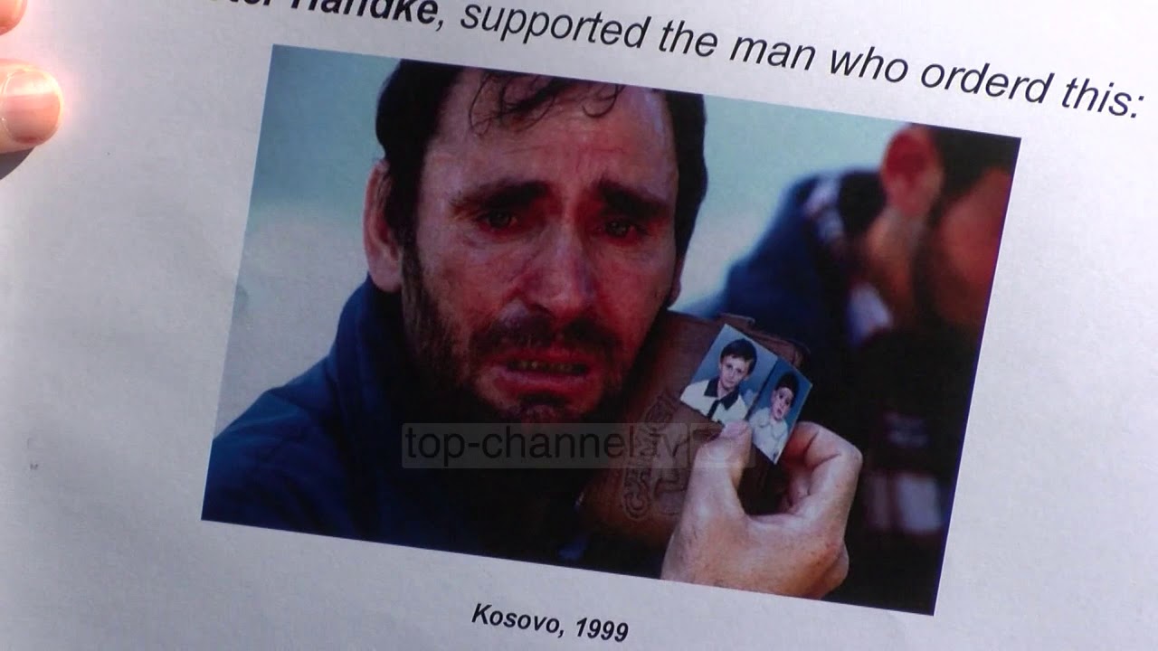Protestë kundër nobelistit/ Me imazhet e viktimave të luftës demonstrohet para Ambasadës Suedeze